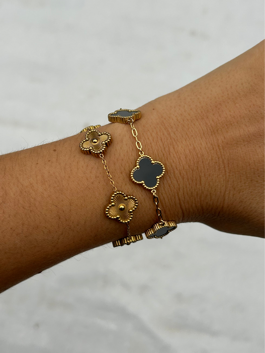 Bracelet NINON trèfles en acier inoxydable DORÉ et NOIR